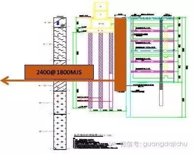 圍護(hù)結(jié)構(gòu)西段采用1000mm地下連續(xù)墻,東段采用采用灌注樁排樁;再結(jié)合2道砼支撐及5道鋼支撐。南側(cè)緊鄰東升大廈,在地下連續(xù)墻外側(cè)設(shè)置兩排MJS工法樁作為隔離樁,以減少地下連續(xù)墻施工及基坑開挖期間對東升大廈的影響。MJS施工區(qū)域離東升大廈最近僅1.5m ,東升大廈一承臺距離MJS工法樁凈距僅1.36m。